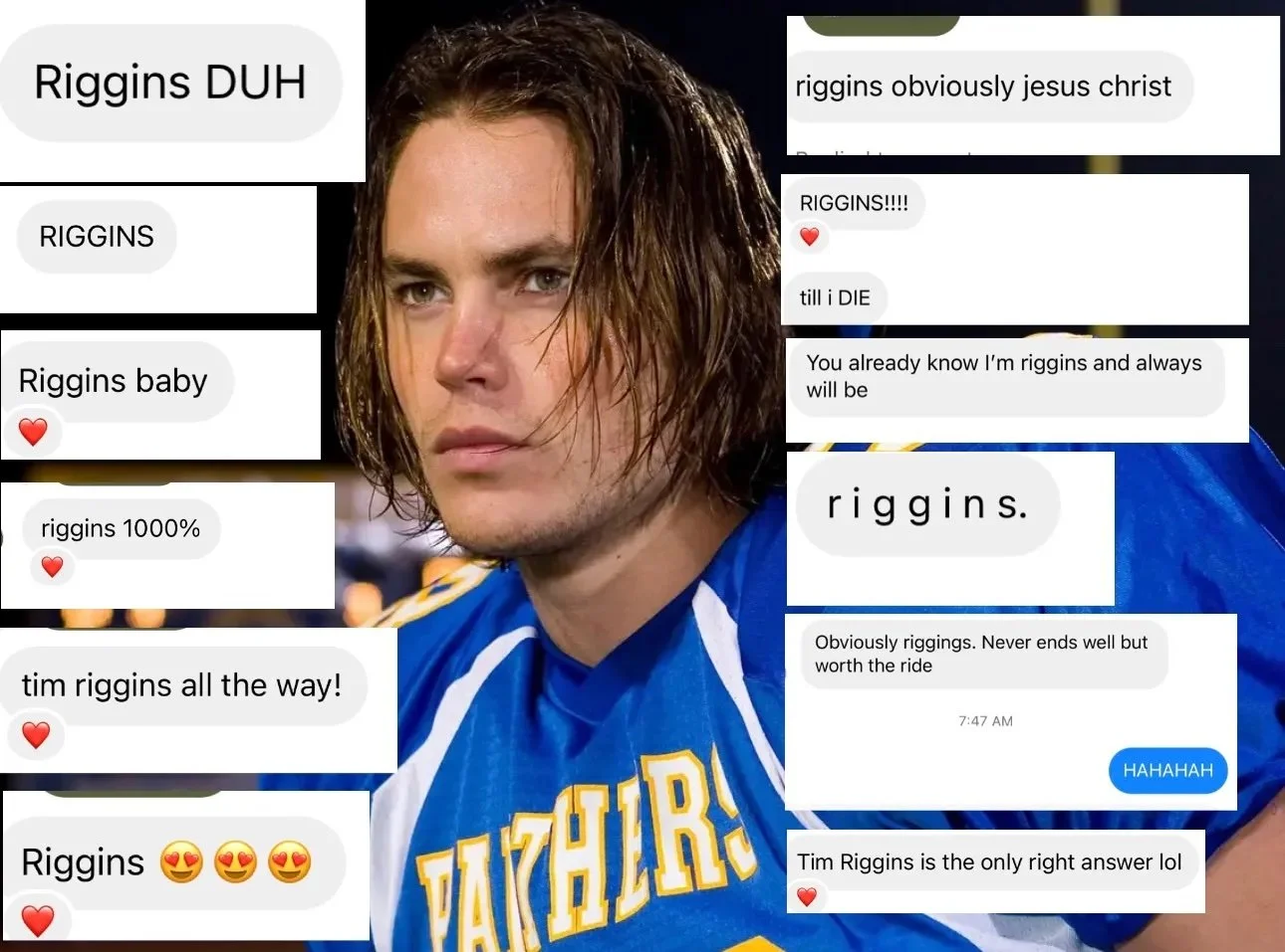 The important thing I want to harken back to, though, is the self-awareness component. Nearly every woman I spoke to, all in their early to mid-twenties, who outed themselves as a Riggins girl carried a real “fuck it” approach. If there’s ever a time for main character syndrome, and to date a Riggins type purely for the chaos, it’s definitely your early to mid-twenties. I remain almost clinically a Saracen girl through and through, but I think I’ll allow it—Texas forever, baby.